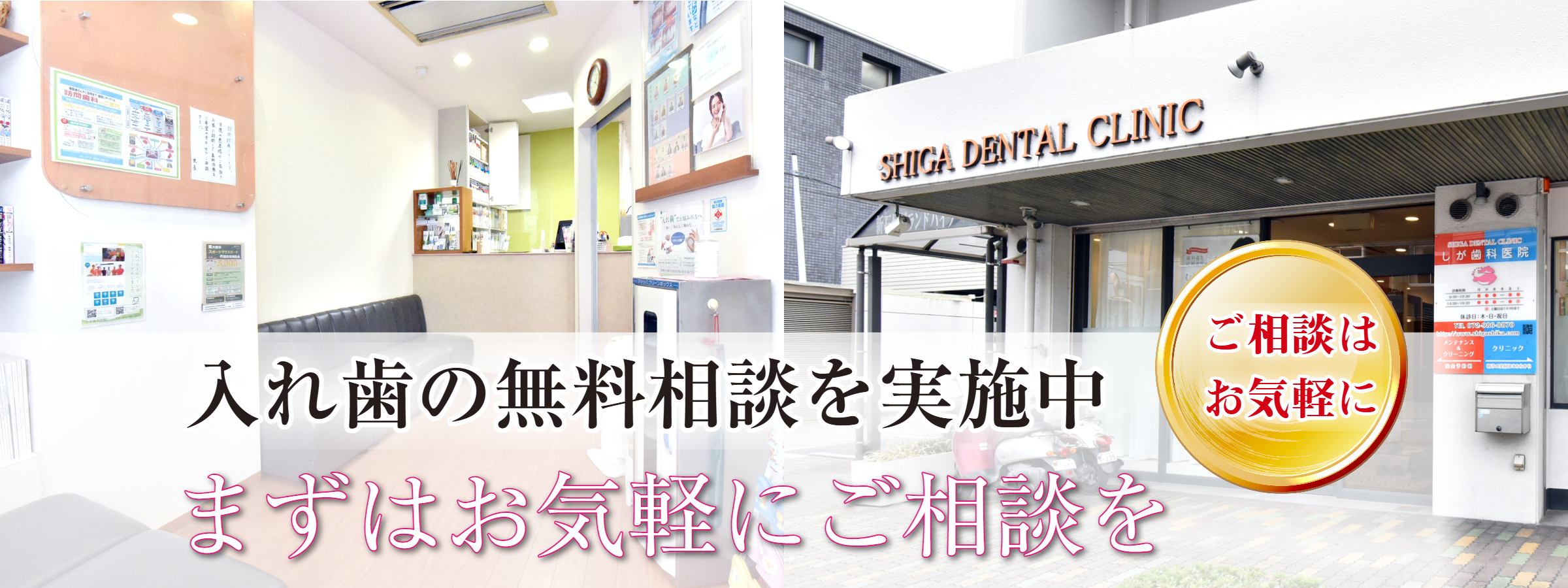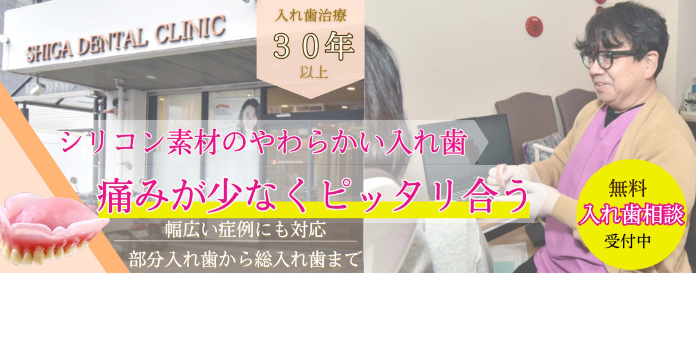 東大阪市にある当院「しが歯科医院」は、入れ歯・義歯の治療に取り組む歯医者です。