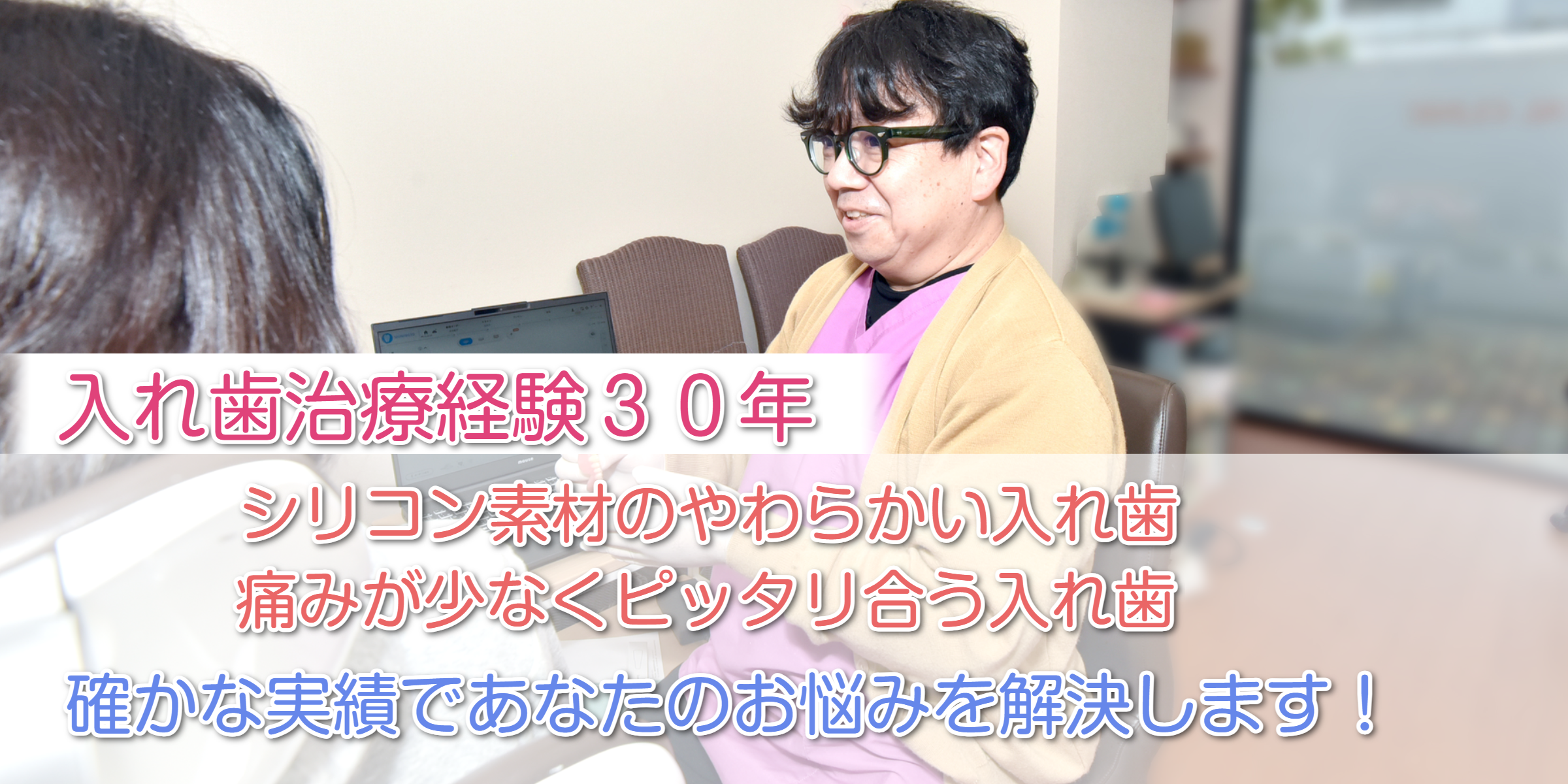 入れ歯の治療で30年以上の経験を持つ院長が、患者さま一人ひとりのお悩みに耳を傾け、痛みの少ない、噛みやすい入れ歯を作製しています。