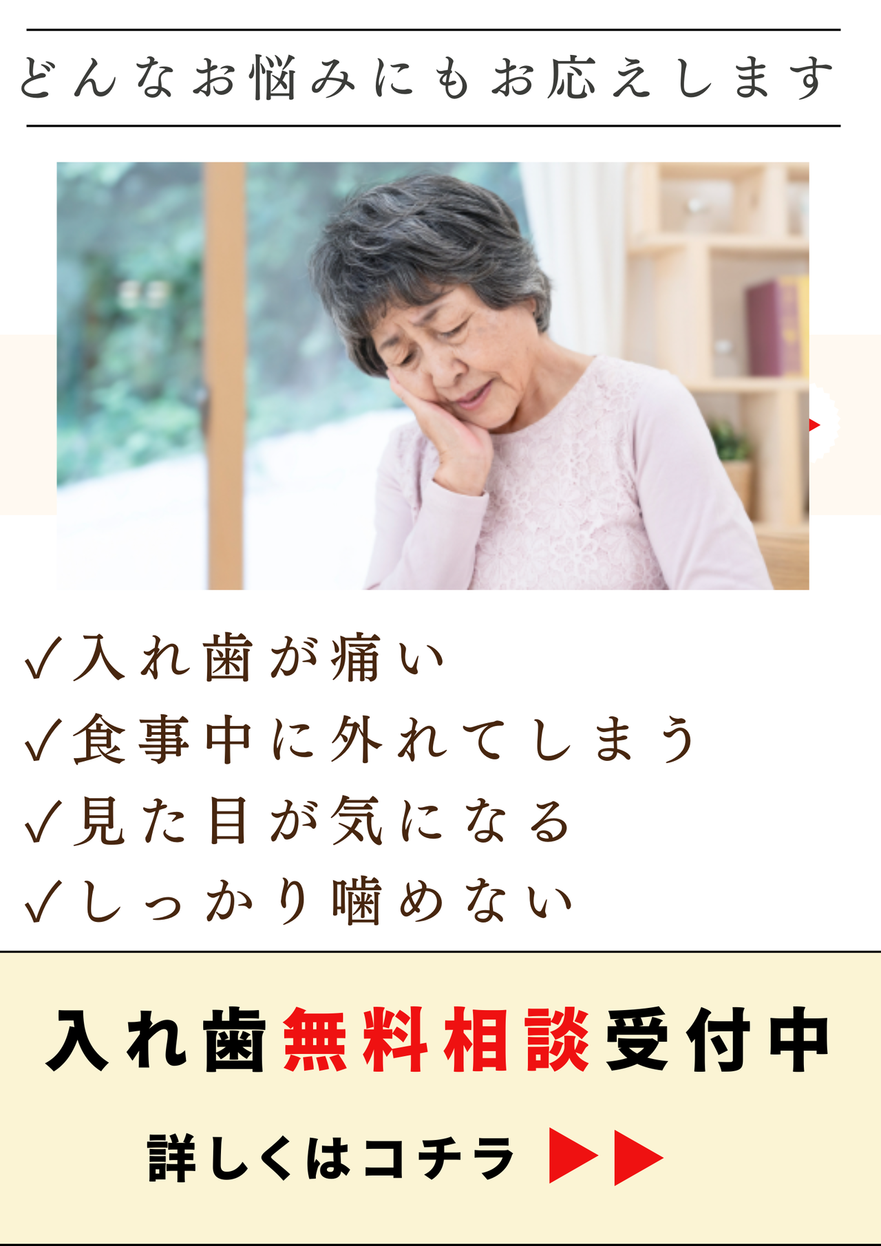入れ歯や義歯に関して少しでも気になることがありましたら、どうぞお気軽にお声がけください。